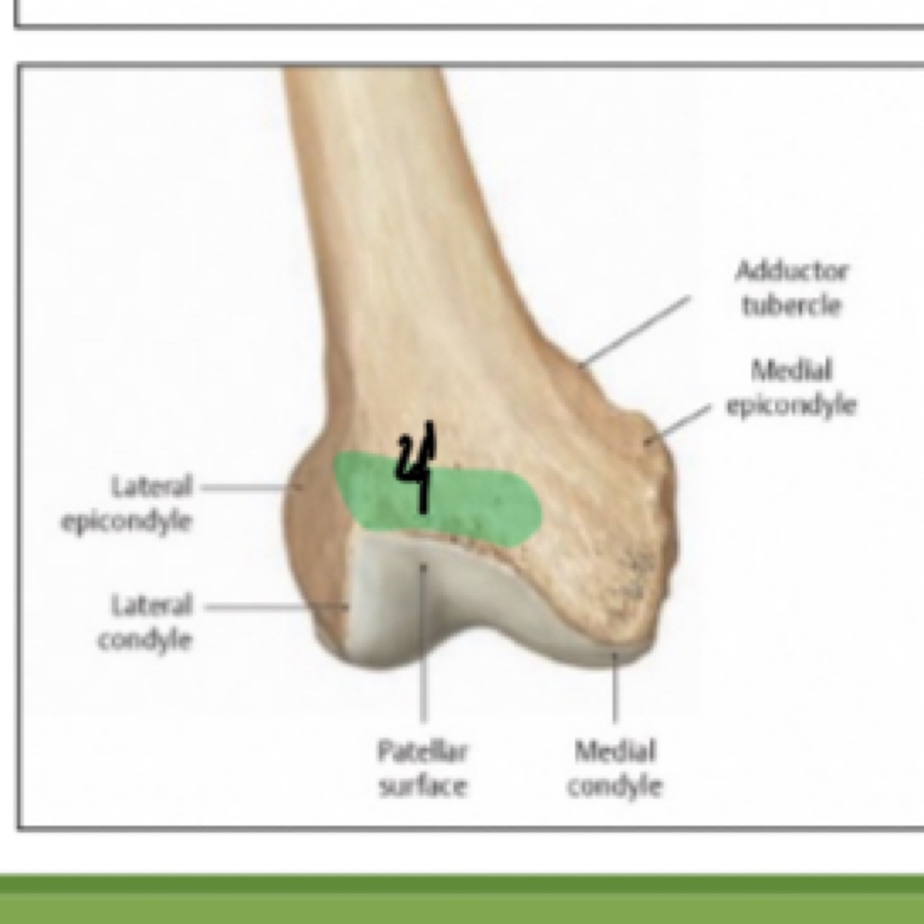Sur la face articulaire. Le sillon supracondylien : qui sépare la surface condylaire de la face poplitée