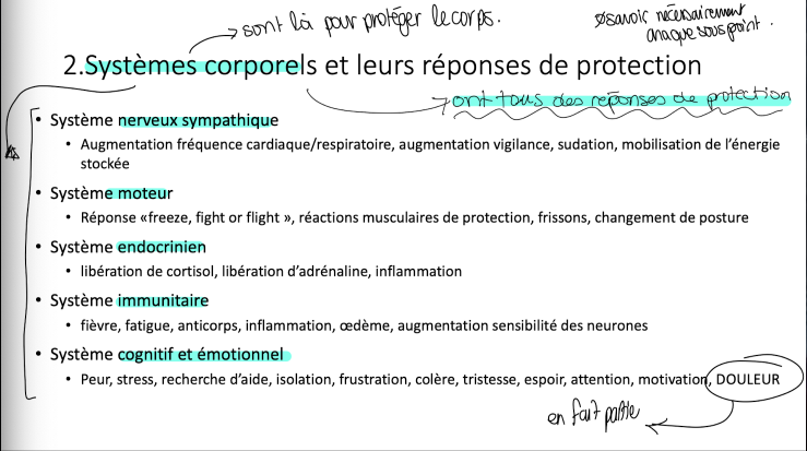 Nomme des systèmes corporels qui ont des réponses de protection (tous en ont, mais nomme ceux vu en classe)