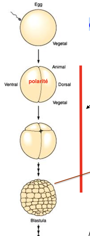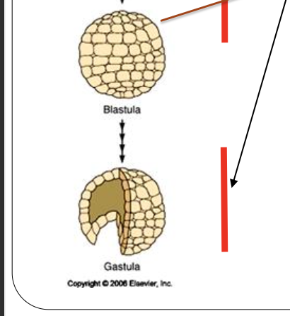 réorganisation blastula en 3 couches (endoderme, méso, ecto)