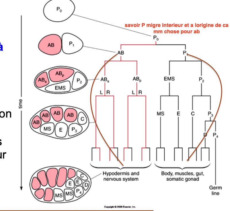 cellules P vs AB : produisent des cellules qui migrent ou? a l’origine de quoi au final?