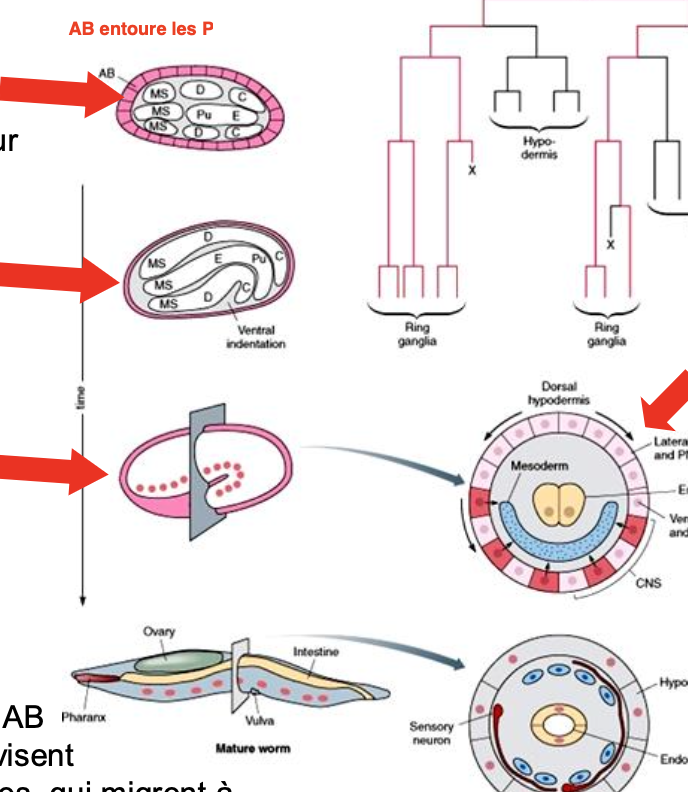 clivage et gastrulation des elegans en 4 étapes