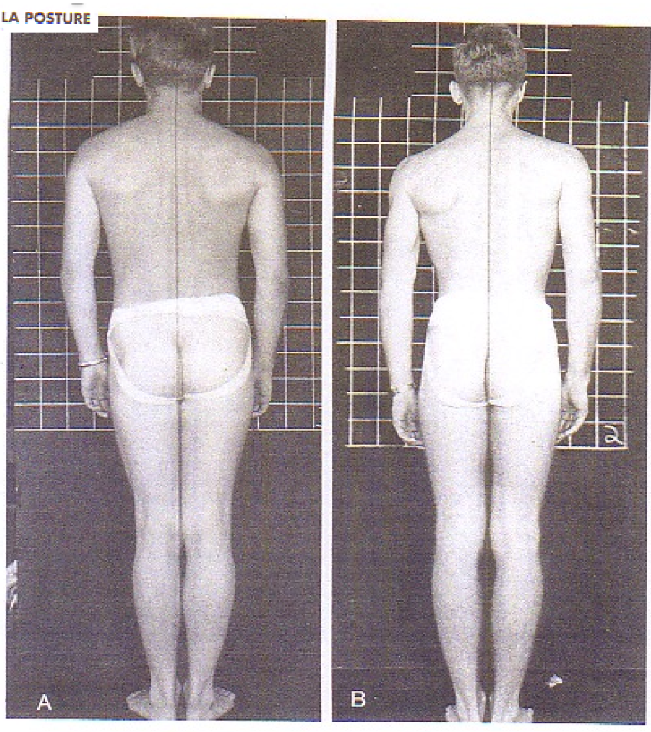 (à GAUCHE ya un droitier épaule droite plus basse et l’iliaque plus élevé. À DROITE un gaucher)