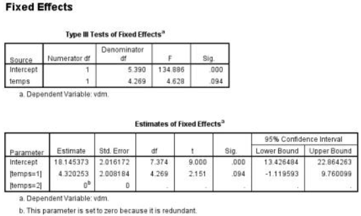 Que signifie ce tableau du modèle linéaire mixte?