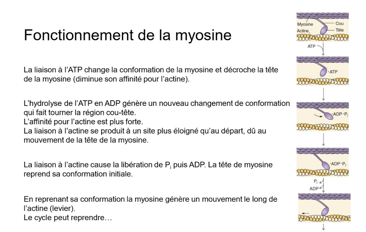 ATP hydrolysé en ADP la myosine veut revenir à l’actine