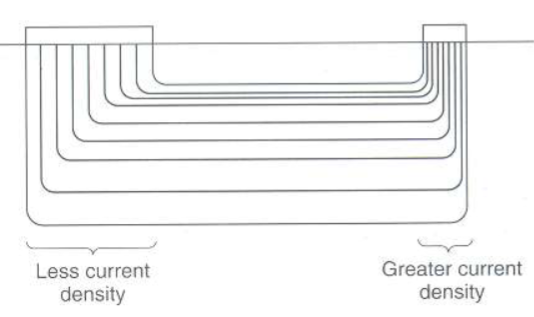 Dans une électrode plus grosse le courant sera plus élevé dans la région