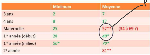 Nommer la moyenne d’items dans la comptine numérique des enfants de 3 ans, 4 ans, maternelle