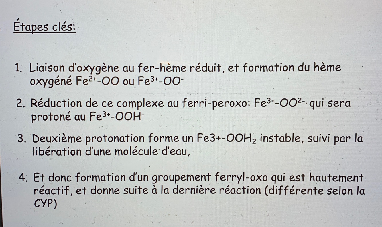—> atome de fer sert comme gr fonctionnel pour le transfert d’un atome d’oxygène