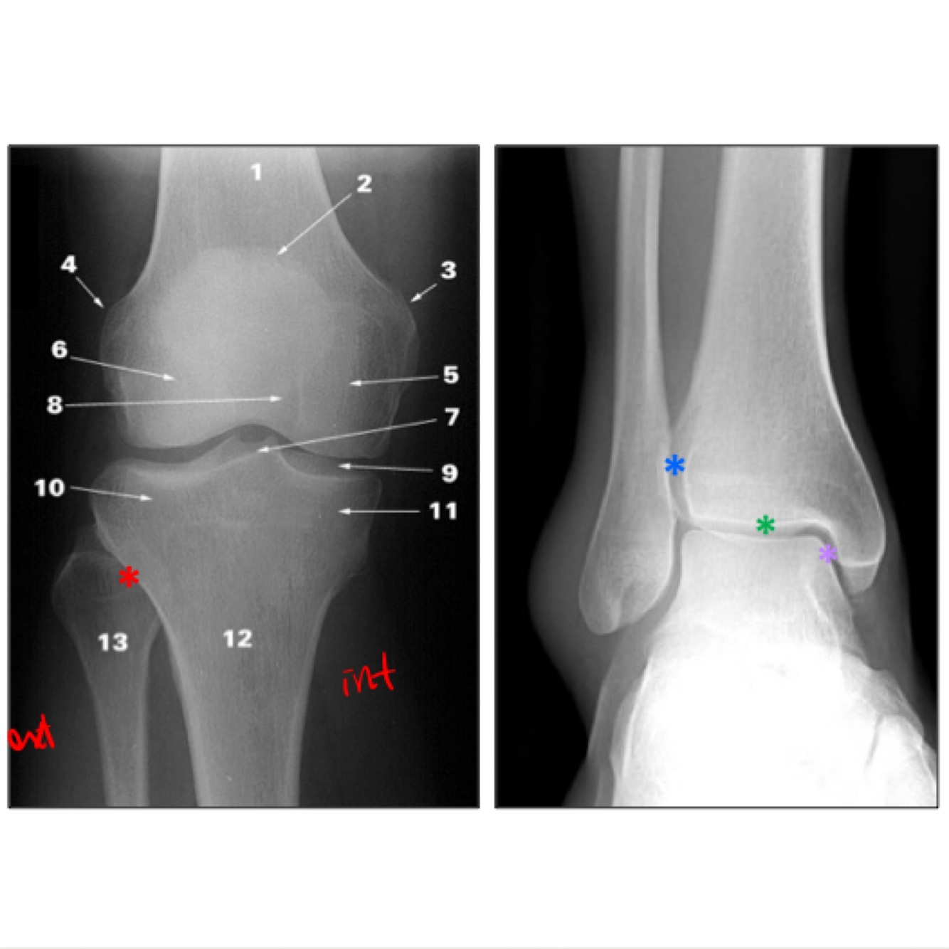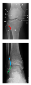 Tibia, femur, talus