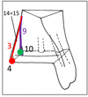 Vert: muscle long fléchisseur des orteils