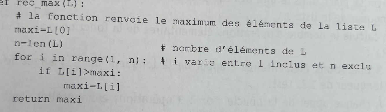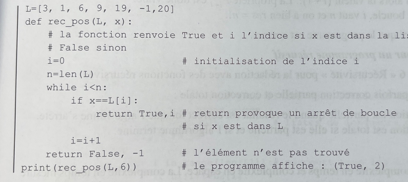 On prend un variant de boucle (un entier qui décroît a chaque itération de la boucle et qui atteindra 0, par exemple n-i). Et du coup, à chaque tour, l’entier décroît de 1. Si l’élément est trouvé, on quitte la boucle sinon on a n-n = 0