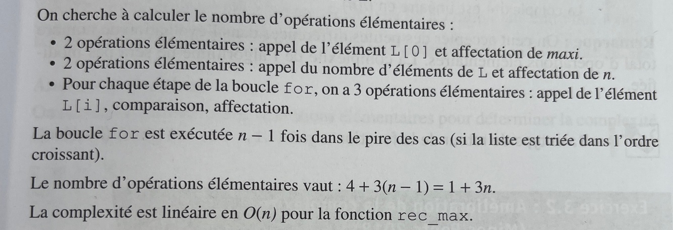 On calcule la complexité de la taille parcourue par la boucle qu’on multiplie avec la complexité qu’on a dans la boucle