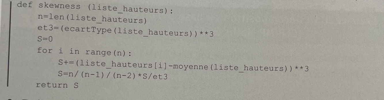 Toute la complexité est concentrée sur la boucle for exécutée n fois. Or, à l’intérieur, on calcule à chaque fois moyenne(liste_hauteurs), la complexité est donc en O(n²) !