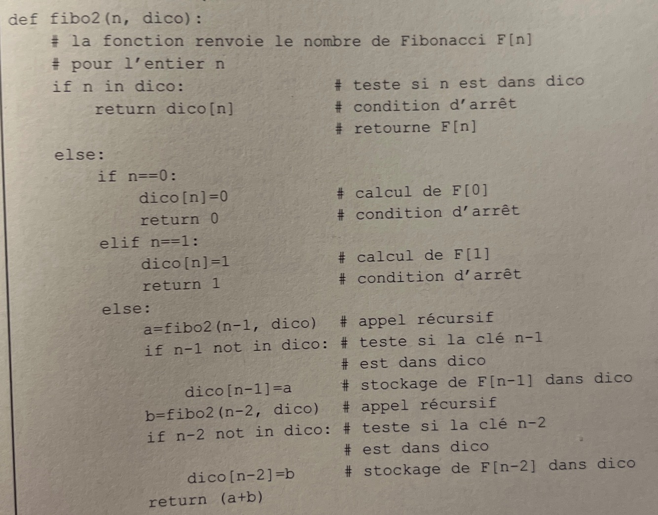 Calcule le nombre de Fibonacci en récursif “Top Down”