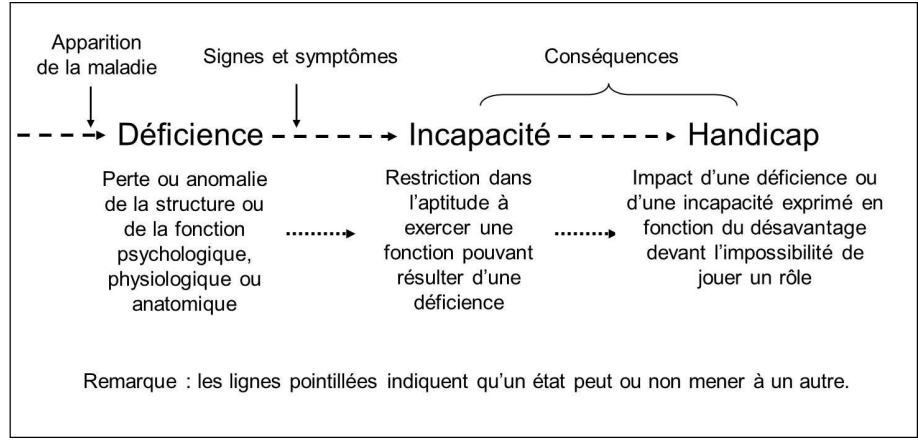 En tout temps, Une déficience mène à une incapacité, qui mène à un handicap