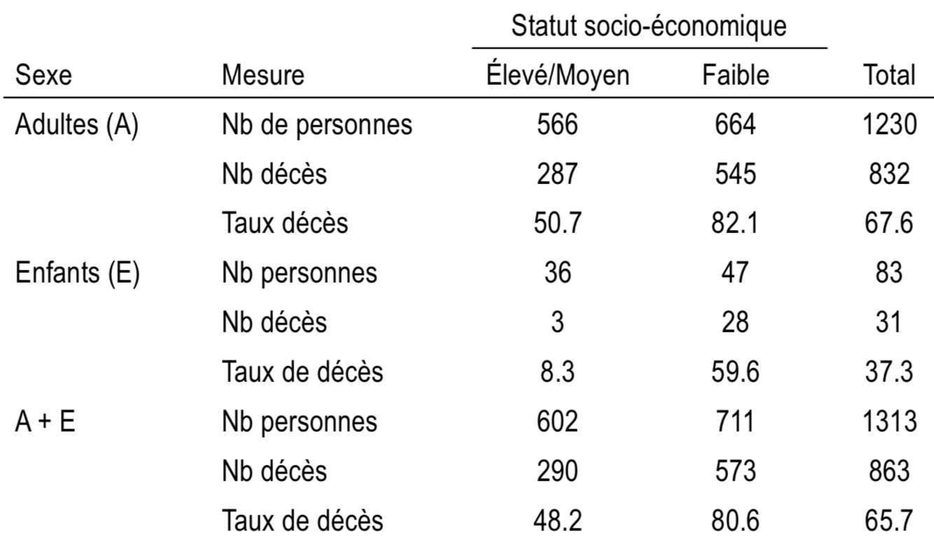 Comment varient les décès en fonction de l’âge (adultes versus enfants)?