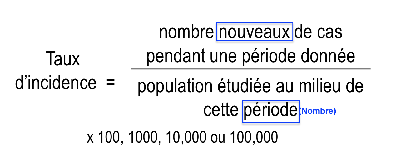 fréquence des NOUVEAUX CAS apparus dans une population pendant une période de TEMPS (DURÉE)