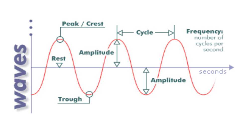 amplitude (hauteur) et fréquence (nbr cycle par sec, lent ou rapide)