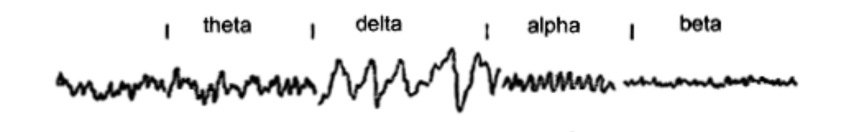 EEG est toujours composé de plusieurs rythmes simultanés, mais il y a un rythme dominant (DONC jamais une seule frequence, un melande pls avec un domiant dependament du sommeil)