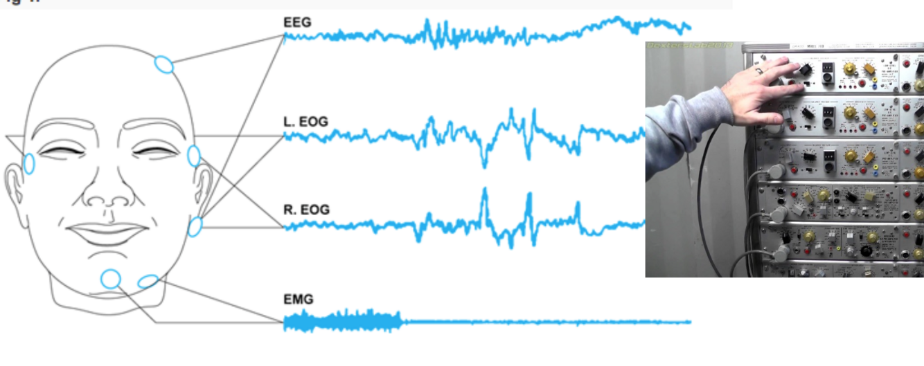 il ssayait d’enregistrer les minuscules signaux électriques produits par les mouvements des yeux de son fils de huit ans qui dormait (si Armond clignote, et est manifestement réveillé).