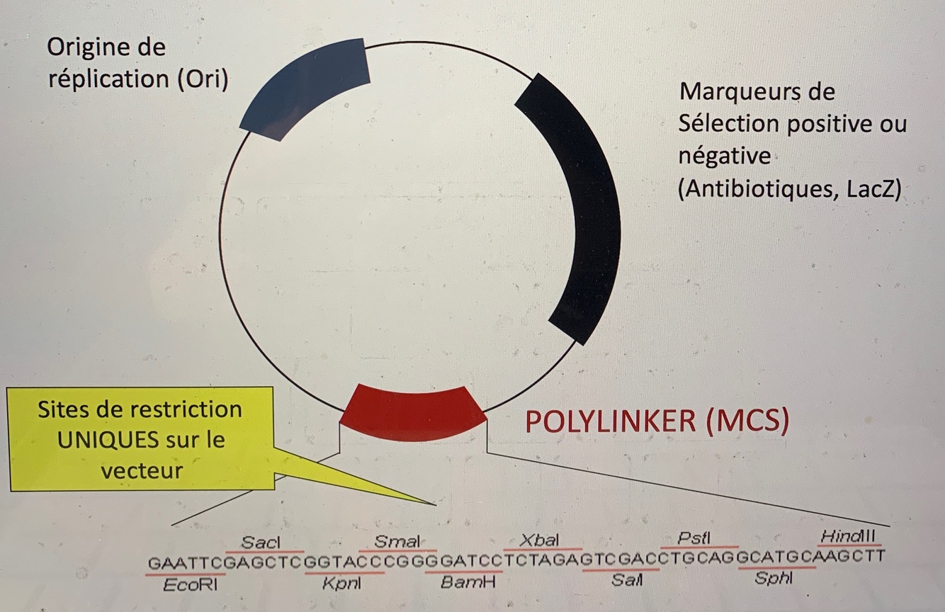 —> Marqueurs de Sélection positive ou négative (Antibiotiques, LacZ)
