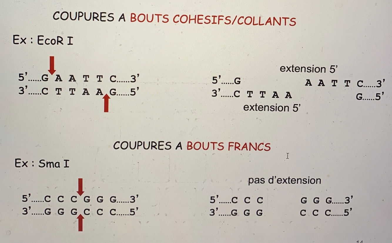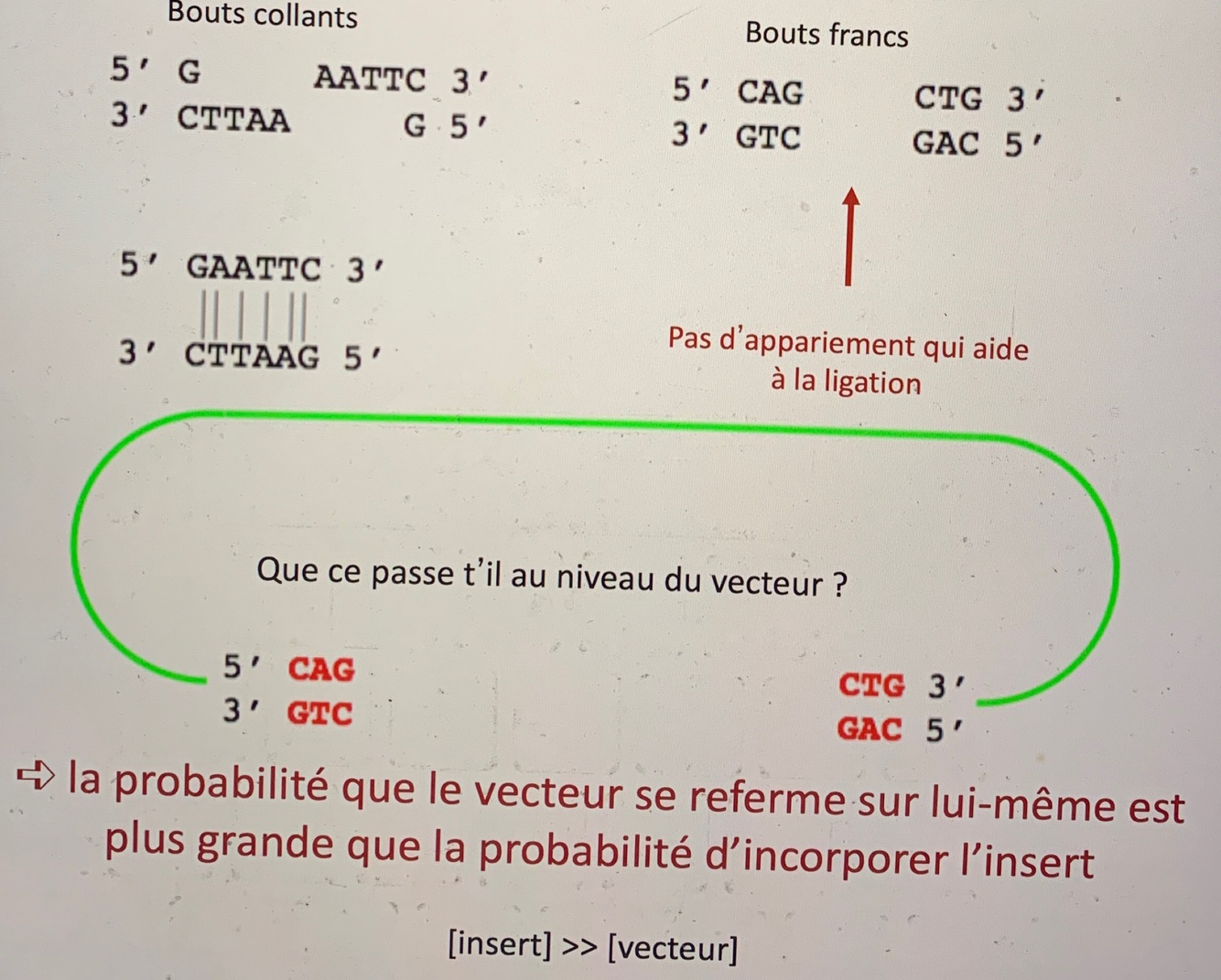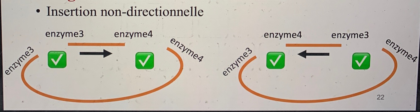 —> memes enzymes pour l’insert et le vecteur (sauf dans le cas d’enzymes compatibles)