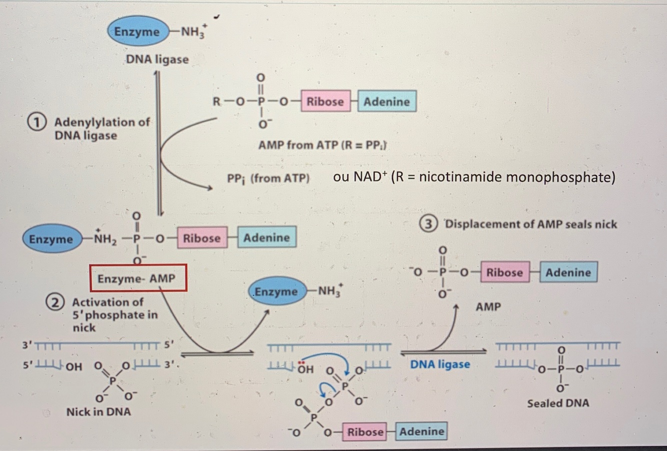—> connecte le 3’OH au 5’phosphate avec ATP ou NAD+ comme cofacteur