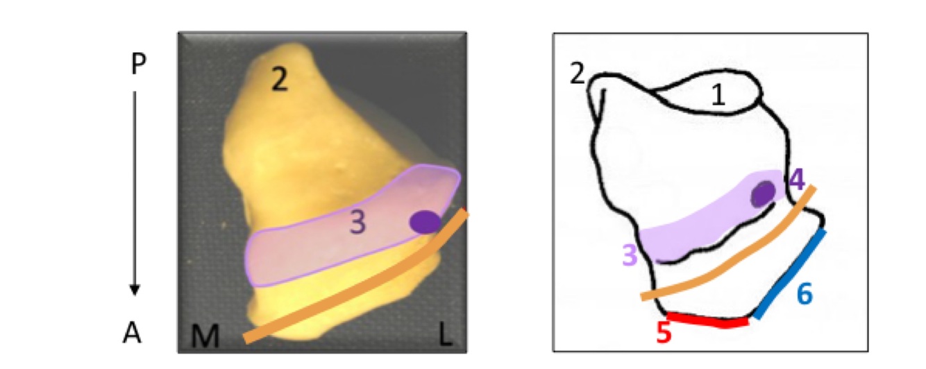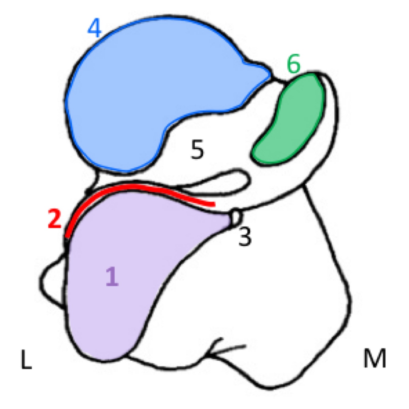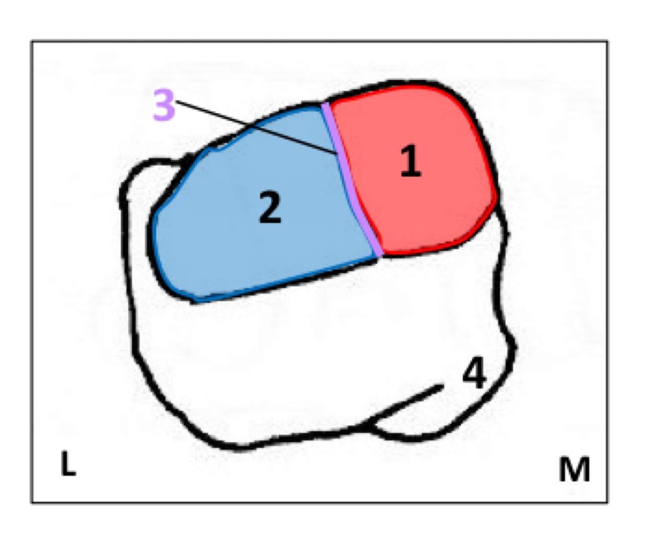 1-La surface articulaire talaire postérieure peut présenter trois extensions facettaires : antérieure (6% des cas), postérieure (6% des cas), médiale (5% des cas)