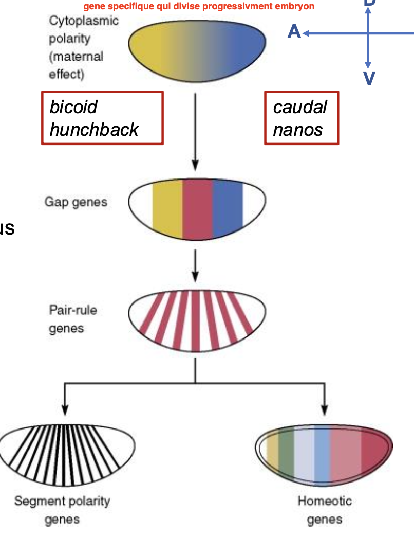 gene specifique qui divise progressivement l’embryon en domaines spécifique