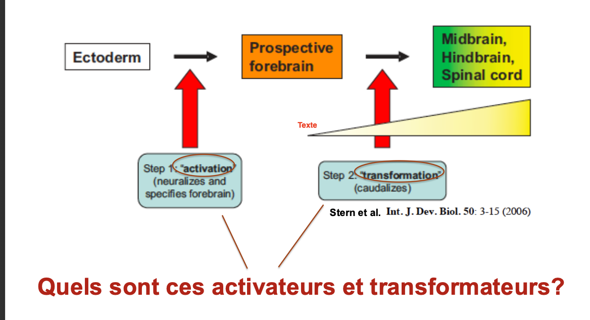 2 étapes de l’hypothèse expliquant comment on passe de l’ectoderme au cerveau