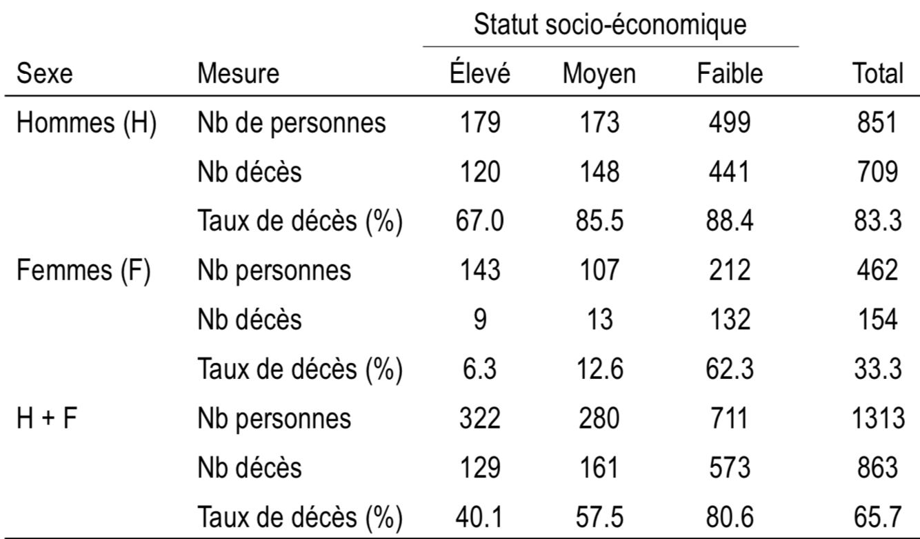 Comment varient les décès en fonction du statut socio-économique chez les hommes et les femmes?