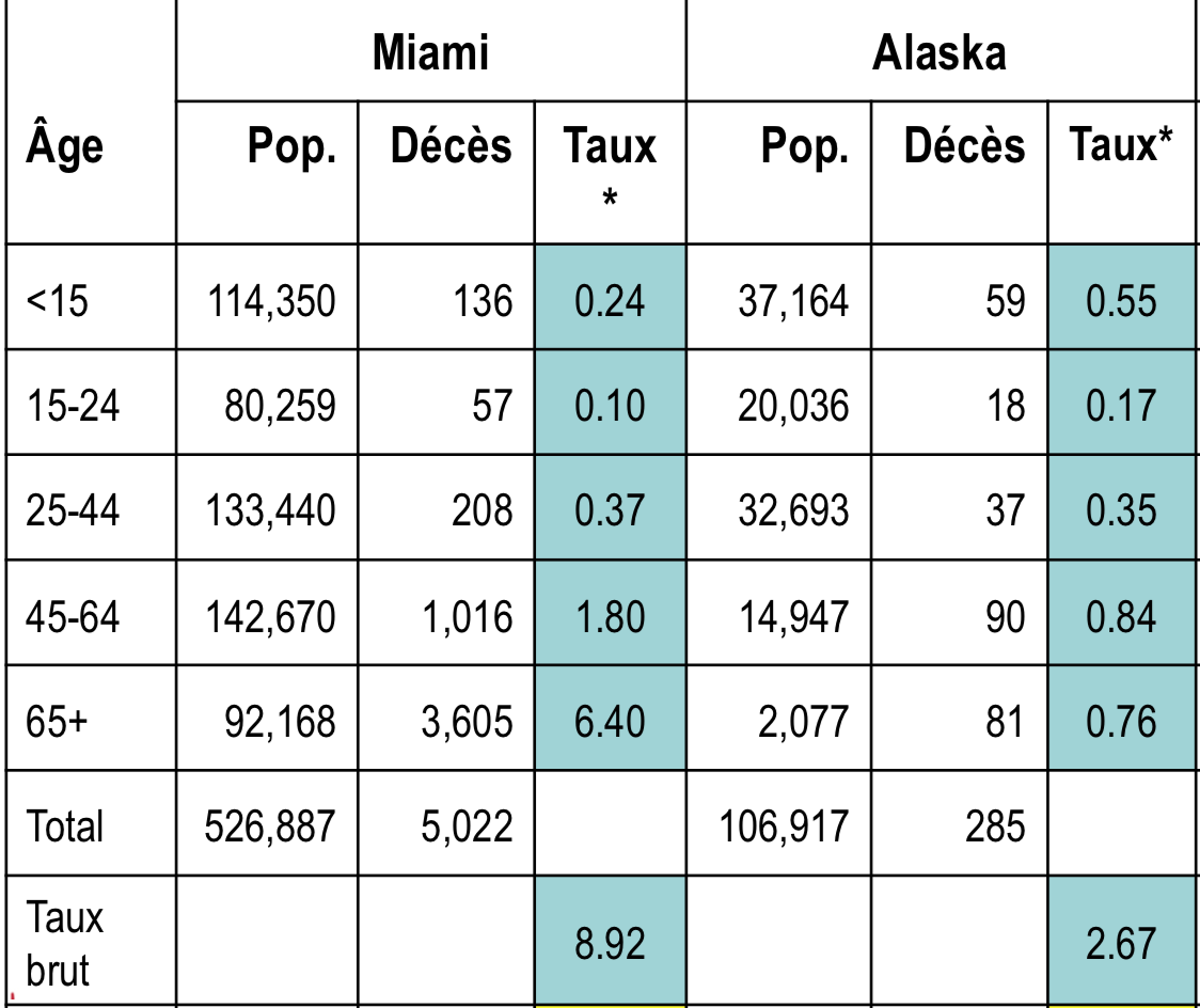 pk on ne peut pas comparé les taux brut de miami à l’alaska?