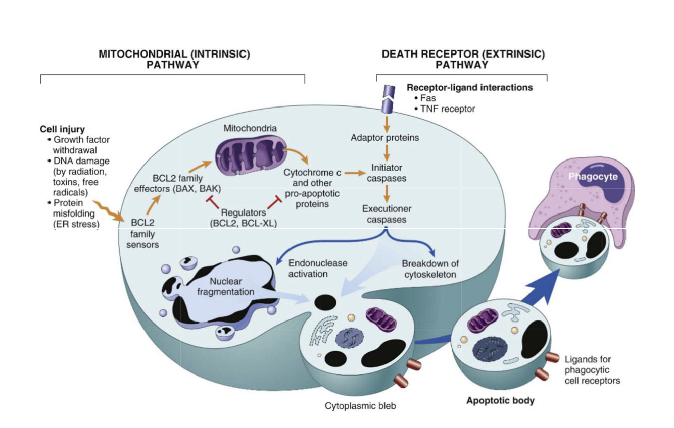 1- Senseurs de BCL2 détectent des processus anormaux et déclenchent processus apoptotique (dommage ADN, mutations, prots mal repliées)