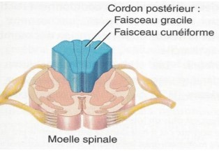 – Le tact, la pression, les vibrations et la proprioception consciente des membres inférieurs, de la partie inférieure du tronc.