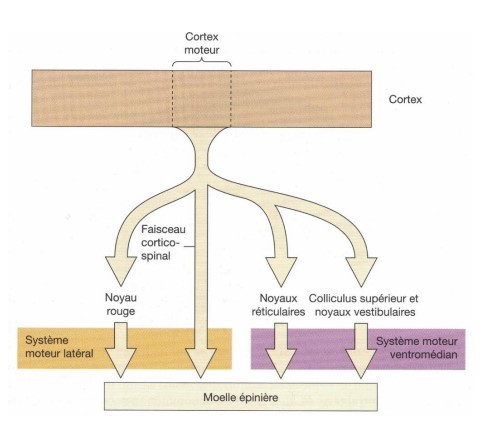 - Les mouvements précis et volontaires, du cortex cérébral aux