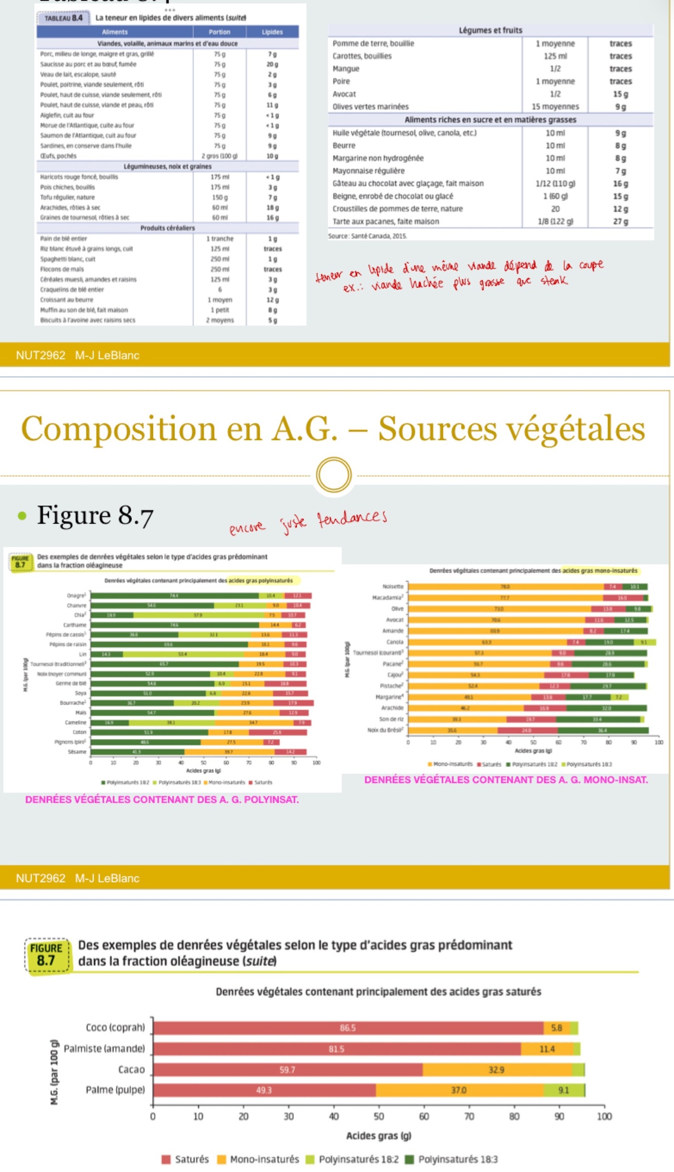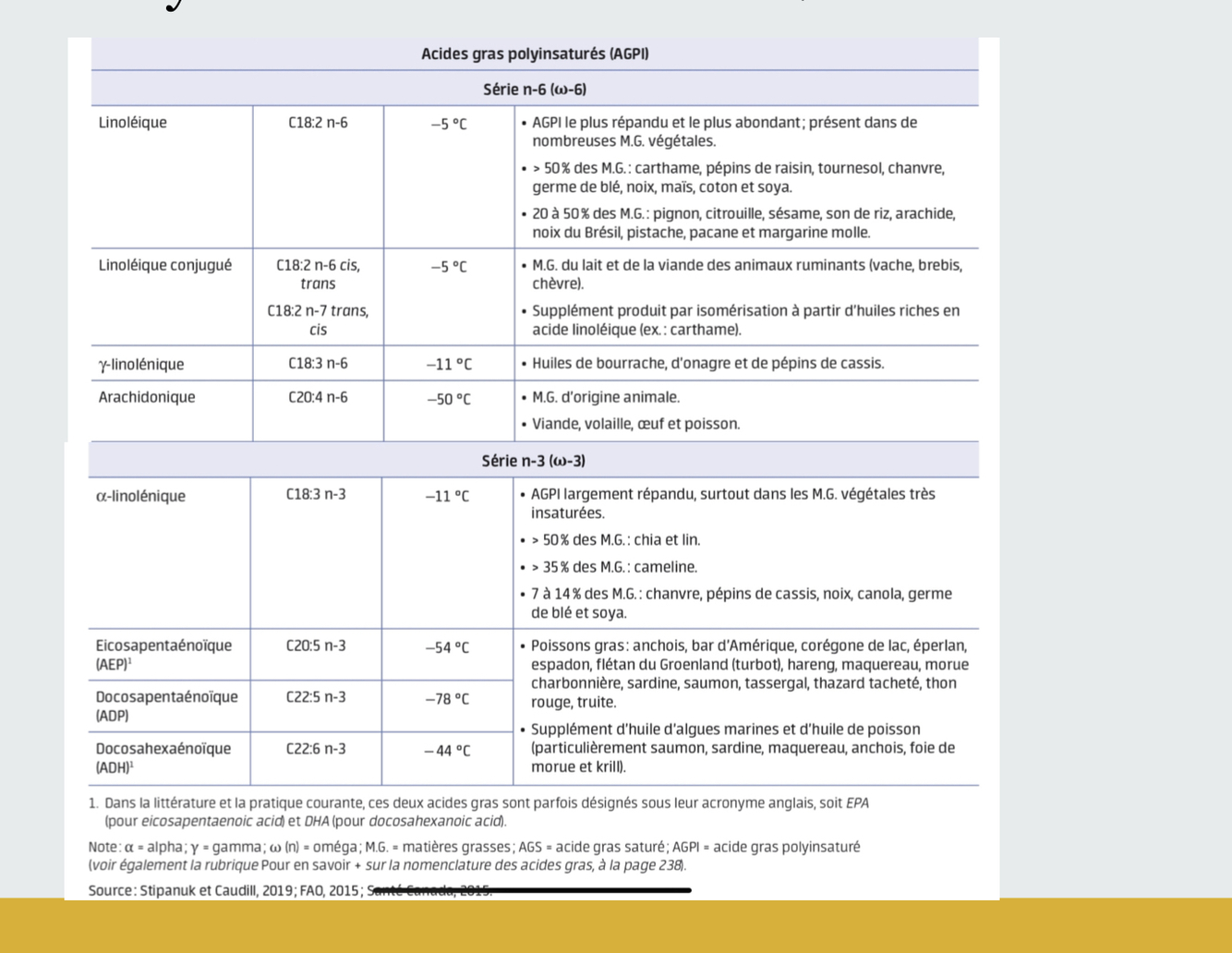 Les aliments qui contiennent des lipides sont composés d’un mélange de différents AG.