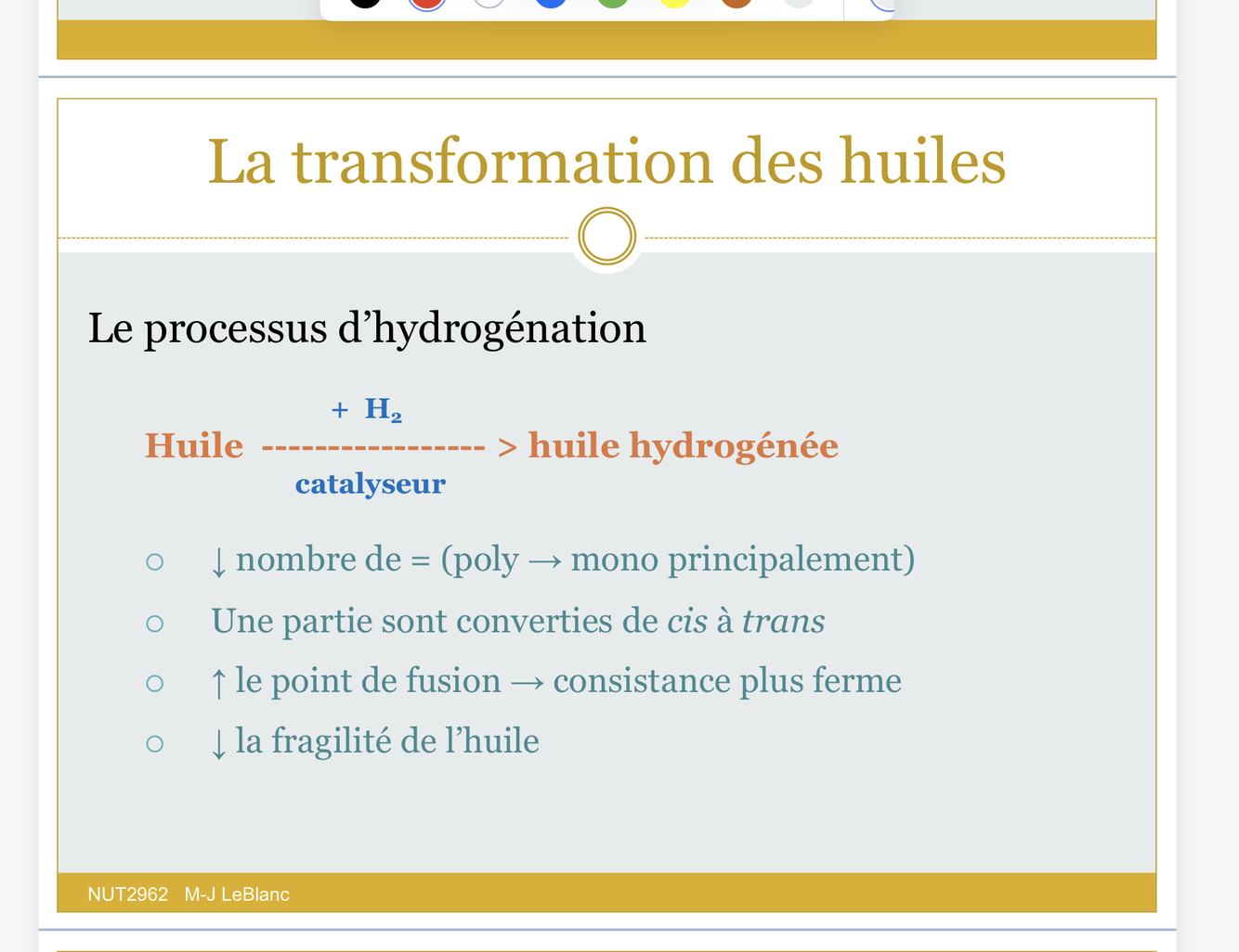 produits suite au processus d’hydrogénation des gras (gras transformés)