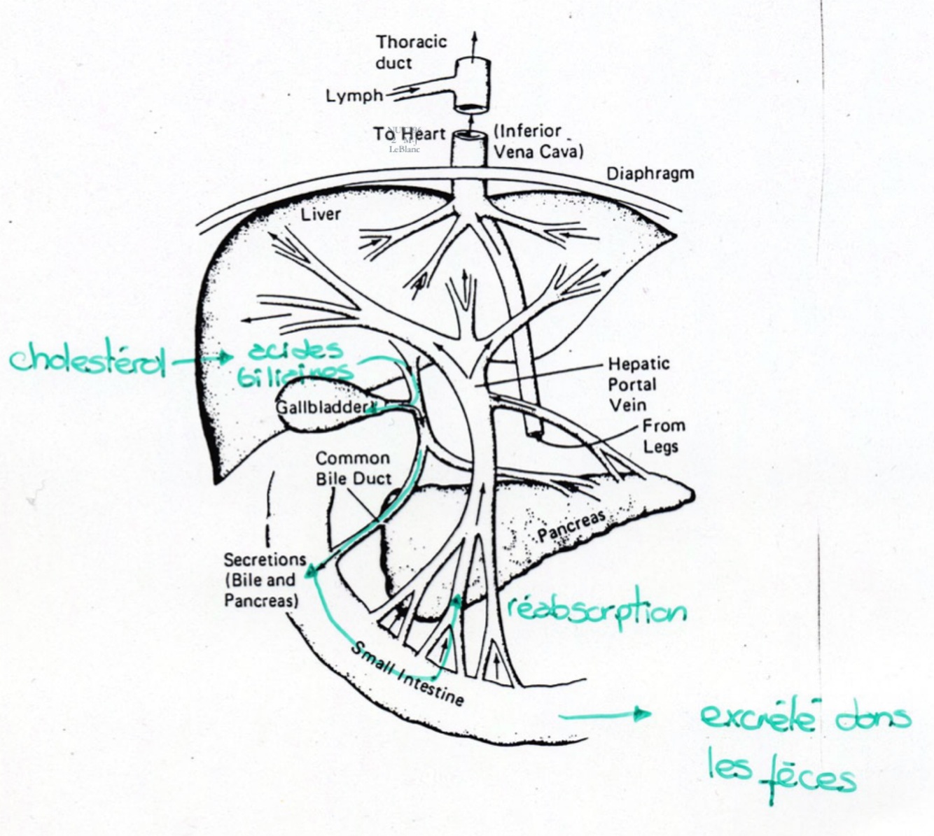 -70% du cholestérol provient pas alimentation, mais plutôt synthétisé du foie (foie: principal site synthèse et voie d’excrétion du surplus de cholestérol, se fait slm chez animaux et humain)
