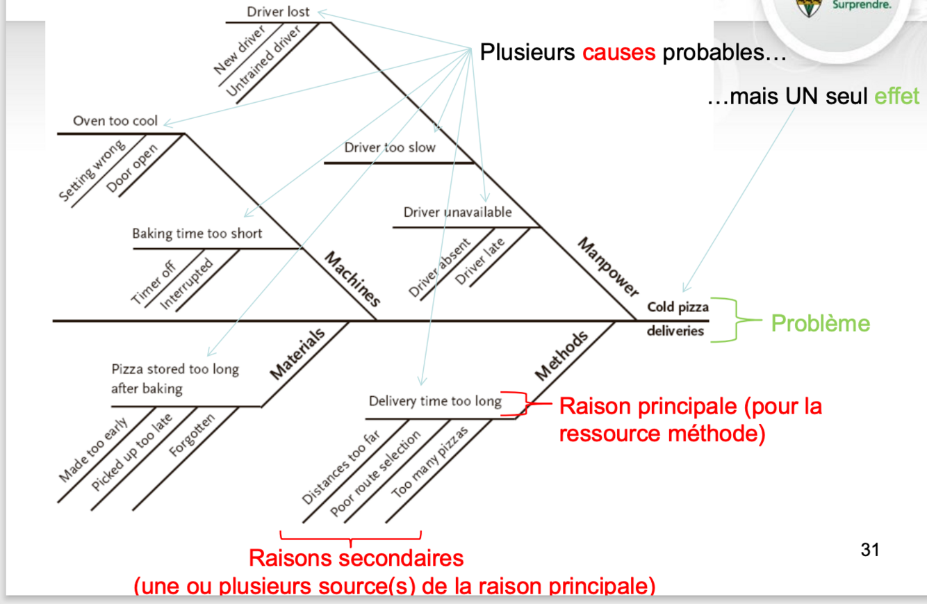 Sert à déterminer les causes qui sont à l’origine d’un problème (effet), donc celles sur lesquelles il faut apporter des actions correctives