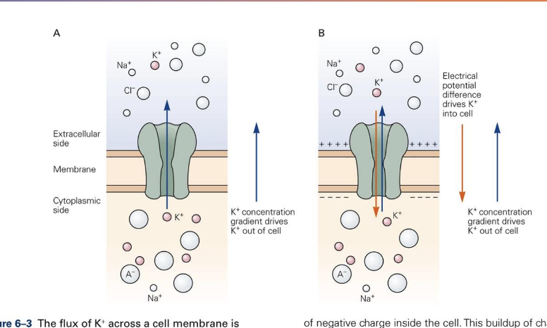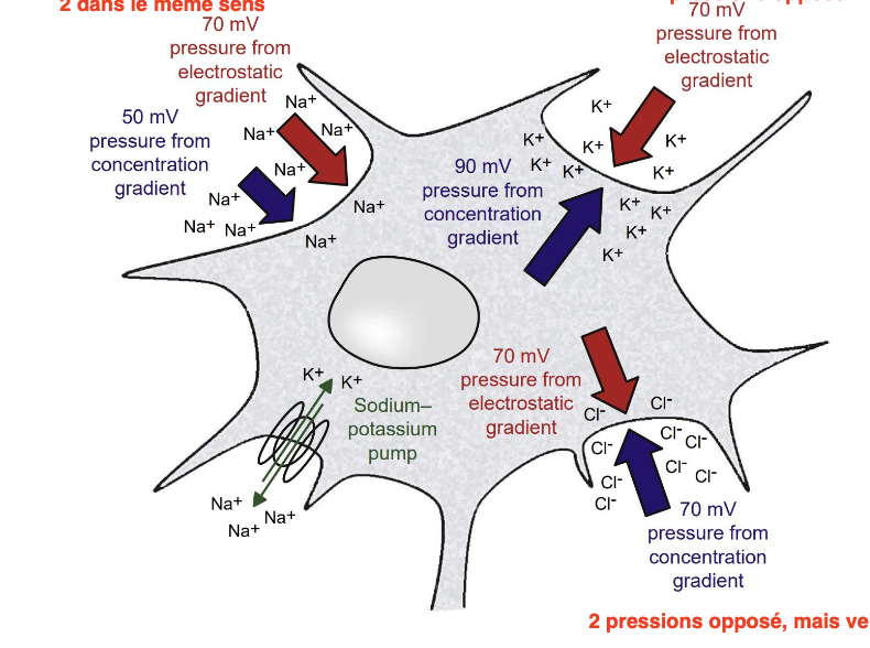 pour le K : gradient de concentration va vers l’extérieur ou l’intérieur? électrostatique?