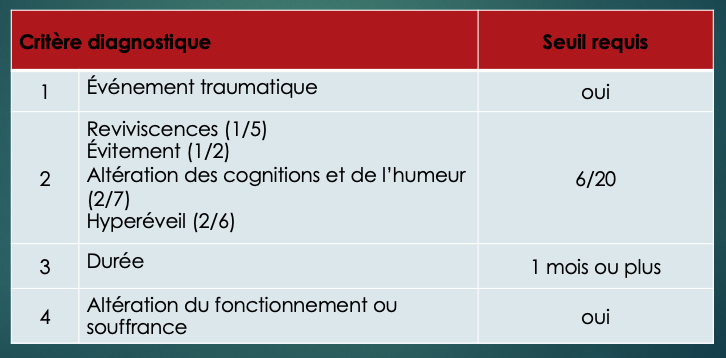 DSM-5 – Diagnostic de TSPT