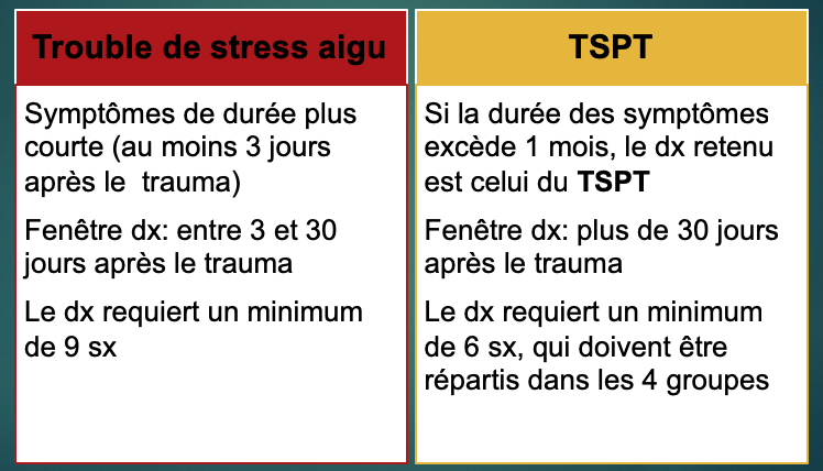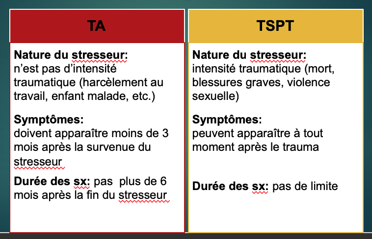 Quelles sont les différences entre le TA (trouble d’adaptation) et le TSPT ?