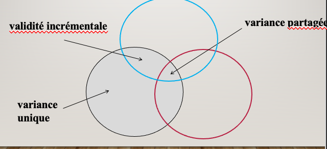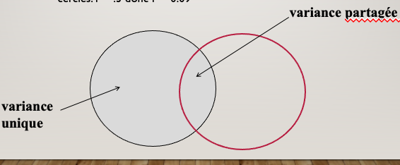 Le chevauchement entre le cercle bleu et le cercle gris représente la variance supplémentaire qui est prise en compte par notre analyse et qui n’est PAS déjà prise en compte par le chevauchement entre le rouge et le gris.