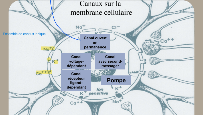 Les différents canaux ioniques sur la membrane plasmique sont responsable de quoi