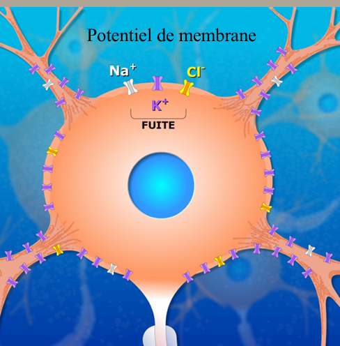 Canal ouvert en permanence : plus potassique et détermine le potentiel de membrane qui change en fonction de la qté d’input synaptique que la cell. recoit