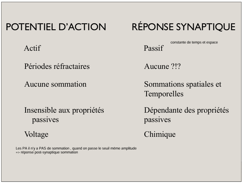 => Ces deux constantes conditionnent l’efficacité avec laquelle un neurone transforme les signaux synaptiques en un potentiel d’action.