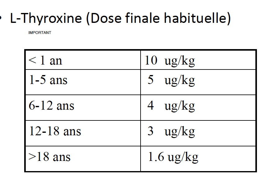 Quelles sont les doses de L-Thyroxine selon l’âge?