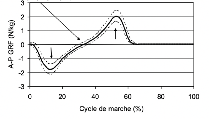 Quelle est la valeur des sommets de cette courbe (forces de réaction antéro-post)