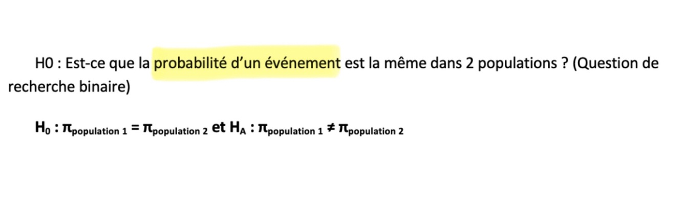 Pour comparer 2 proportions (entre 2 groupes)