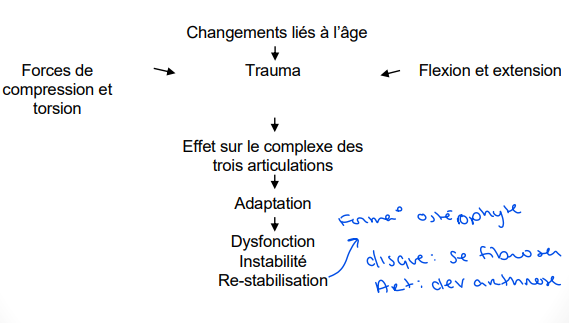 VF La dégénérescence du segment mobile se fait avec âge et est augmenté par les F de compression axiales, de rotation et les flexions extensions répétées