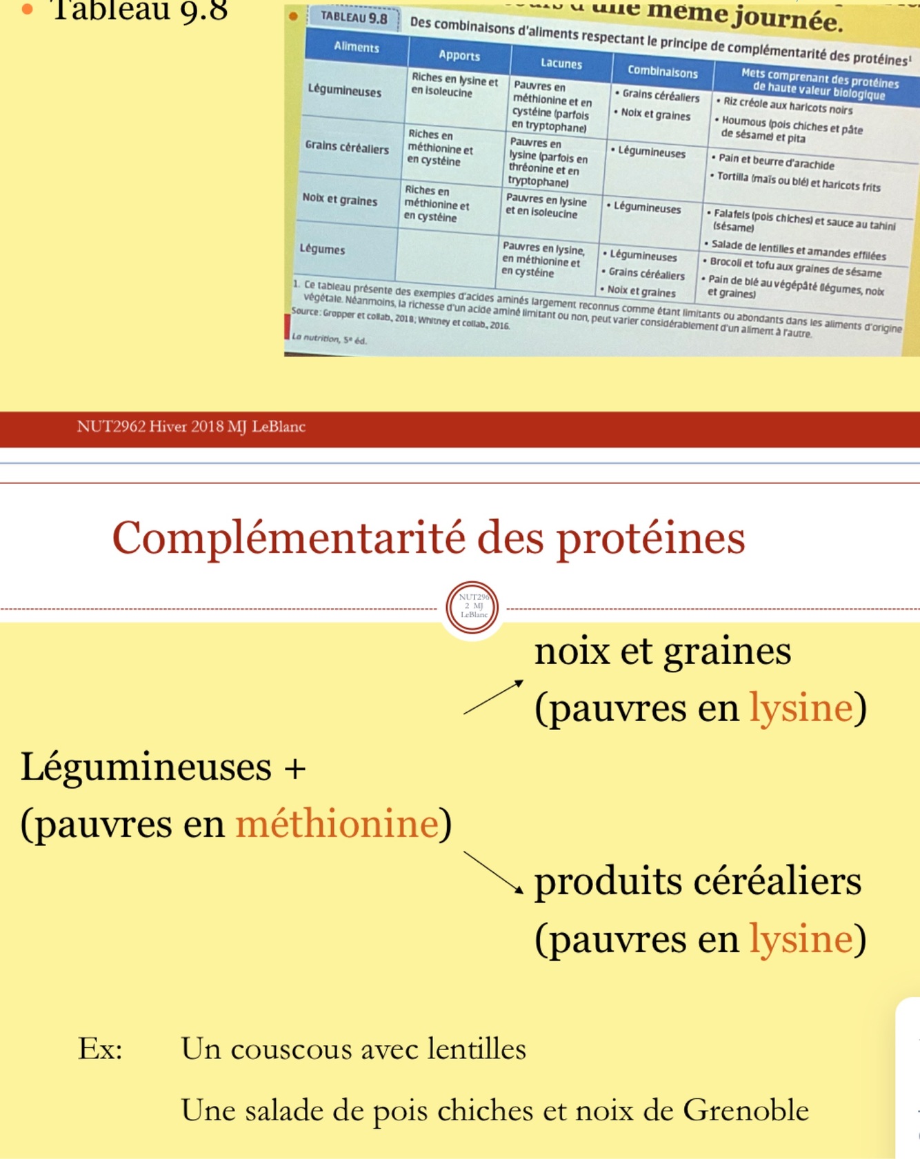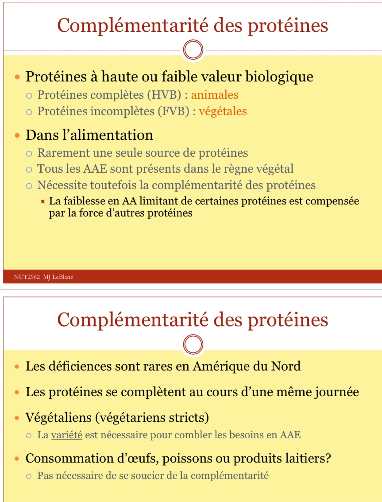 les protéïnes alimentaires se complètent lorsqu’on les consomment au cours d’une même journée (pas juste au travers d’un repas)